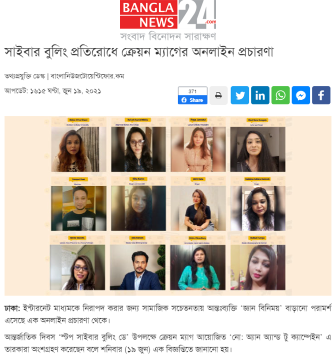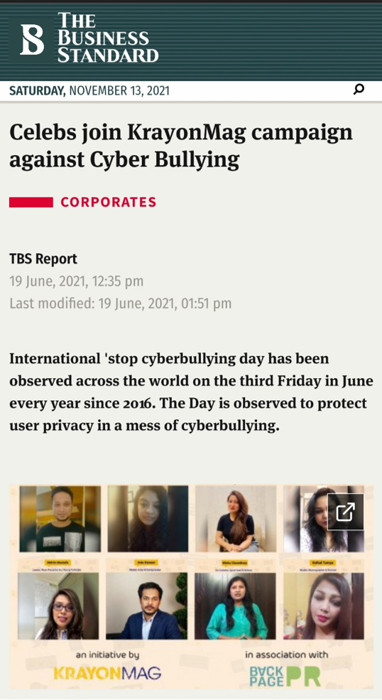 International ‘stop cyberbullying day has been observed across the world on the third Friday in June every year since 2016. The Day is observed to protect user privacy in a mess of cyberbullying. Celebrated actors and artists have echoed to increase inter-personal knowledge sharing to secure the internet amid growing concern on cyber bullying. Supporting the campaign run virtually by KrayonMag, stars have come together to raise their voice on the international ‘stop cyberbullying day’, states a press release.